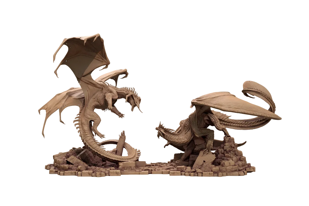 Unsere Dioramen fertigen wir aus dem gleichen Resin wie unsere Büsten – ohne Elastomeranteil. Daher bleiben Kanten messerscharf, Mikrodetails treten klar hervor. Washes greifen sauber, Drybrush setzt Highlights präzise, Airbrush verläuft kontrolliert – ohne speckige Reflexe. Die höhere Steifigkeit sorgt für passgenaue Fugen, stabile Verklebungen und sauberes Versäubern. Ideal zum Bemalen und Fotografieren.