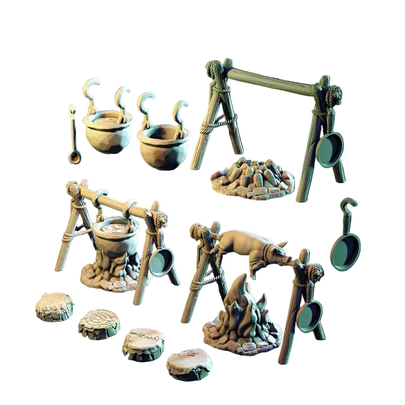 Unser komplettes Terrain wird aus Resin gefertigt, daher sind Kanten messerscharf und feine Details klar sichtbar – das macht Drybrush, Washes und Edge-Highlights wirkungsvoller. Bewegliche Elemente wie Türen, Leitern, Fallgitter oder drehbare Plattformen sorgen für interaktives Gameplay, während stationäre Bauteile wie Mauern und Ruinen formstabil bleiben – ideal für dauerhafte Setups. Das Resin ist robust, sodass Transport und häufiges Anfassen kein Problem sind, und zugleich, leichter zu bemalen und langlebig – für maximalen Spielspaß in jeder Runde.